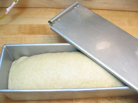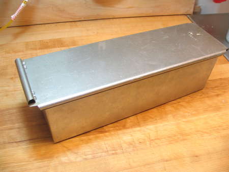 When it's done, the bread will slip right out of the pan, which has a very effective non-stick glaze; the inner surface of the pan feels almost glassy. It comes from Chicago Metallic, which has been providing us with bread pans for nearly 20 years. This one's sold to professional bakers; it's not in their regular retail line, but we manage to nudge a few out of them each year to offer to all of you passionate bread bakers.