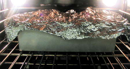 Lid on, and into the oven it goes. (Oh, remember to grease the inside of the lid.)
