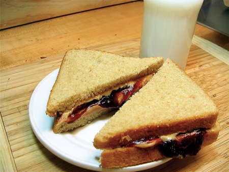 Next step? PB & J on whole wheat. Add a glass of cold milk, and I tell you, you'll feel like you're about 10 years old again. Speaking of kids and bread... Halley, our Web projects manager, snagged the loaf you've just watched me make. In the car on the way home, she gave her 6-year-old daughter, Daisy, a lollipop and a piece of bread. Daisy tried the lollipop, tried the bread, and told Halley, “Mom, you can have the lollipop back. Can I have some more bread?” Now THAT'S an endorsement!