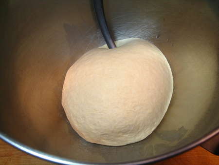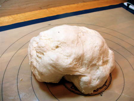 Here it is, kneaded. Notice it's not absolutely completely smooth; that's because it's going to rest in the fridge overnight, and the gluten will keep developing as it rests. If I kneaded it fully before refrigerating, the gluten would over-develop and make the dough hard to press flat. You've been there, right? The crust that keeps springing back as you roll? Keep reading, I'll show you what to do about that.