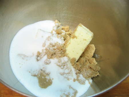 “Cream” them together. If you don't know what “cream” means, in a baking sense—this ain't it! It's a good start. But for something to be fully creamed, it should look like this:
