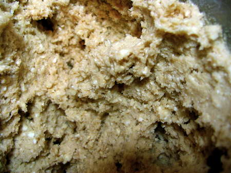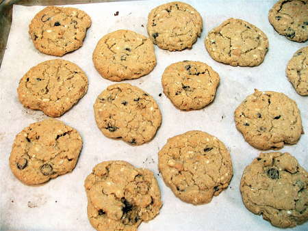 Here's the dough with the oats, white chocolate, and flour added; that white chocolate is going to add a certain “mmm-MMM!” to the finished cookies.