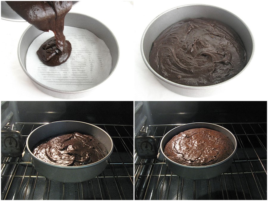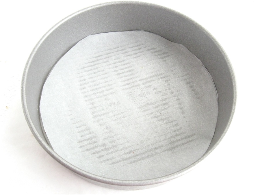 Grease an 8” round cake pan, and line it with parchment. Cut it to size by laying the pan atop the parchment, drawing a circle around it with a marking pen, then cutting it out. Lay the parchment in the pan, and grease the parchment.