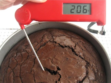 Remove the cake from the oven; it should register at least 200°F on an instant-read thermometer inserted into its center.