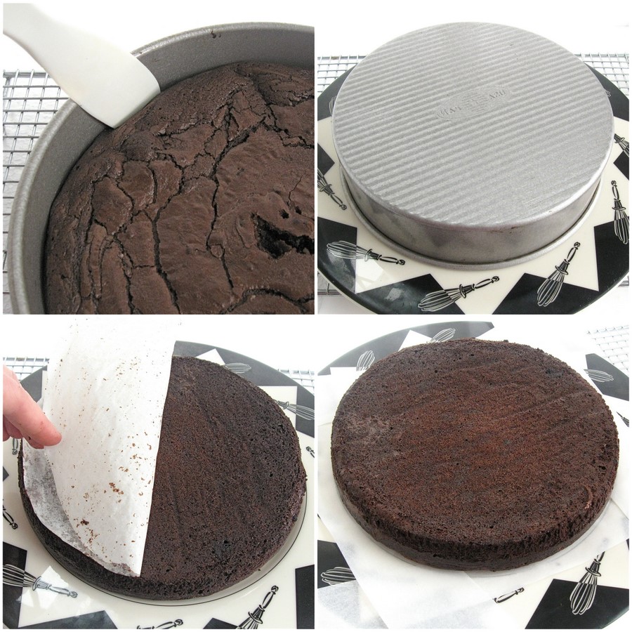 This cake is actually a bit over-baked; I should have lowered the temperature a couple of minutes, because I was using a darker (dark gray) pan.
