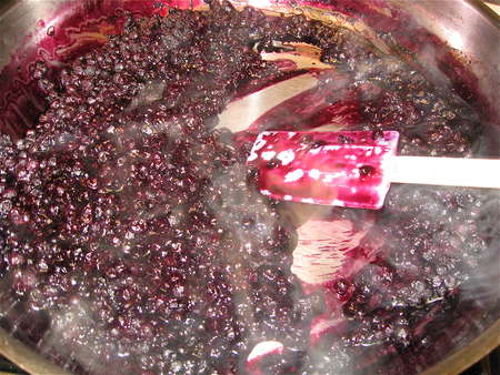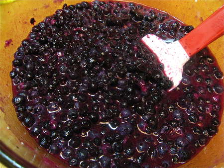 The berries have baked for 30 minutes, and they've started to bubble. If this was YouTube, you'd be able to see it. Since it's not, you'll just have to take my word for it.