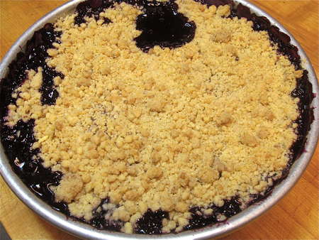 Spread the streusel evenly over the berries, and return to the oven.