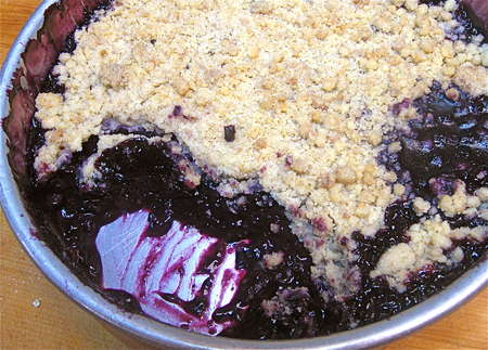 Now here's the result I was really hoping for: blueberry crisp without the puddle of juice in the bottom of the pan. Success!