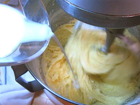...alternately with the milk. You don't have to beat; just stir to make sure everything is combined. Flour, milk, flour, milk... however many additions it takes, start and end with the flour.