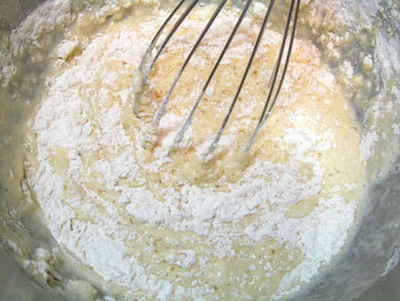 No need to beat; just stir to combine. A few lumps are OK.
