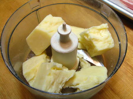 Chunk the cheese, and put it in a food processor. A mini-processor is handy, if you have one.