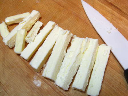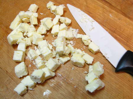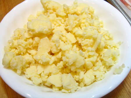 Process it just enough to make small, irregular chunks. If you don't have a processor, just grate the cheese coarsely.