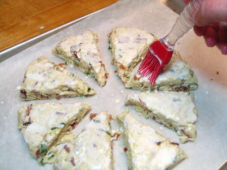 ...and separate each wedge, so they're not touching. Then brush with a bit of cream or milk; this will help the scones brown.