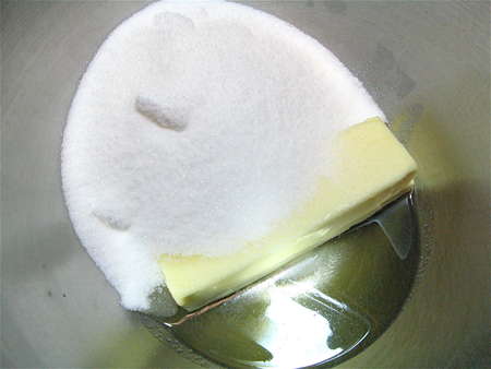 First, we're going to take zucchini and make something completely antithetical out of it: chocolate cake. You've heard of zucchini bread, right? Zucchini muffins, and pancakes? Same concept, taking zucchini and mixing it with flour, sugar, eggs, butter... But (my opinion), bringing it to a new level. Let's start with sugar, butter, baking powder/soda, salt, vanilla, and vegetable oil.