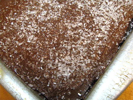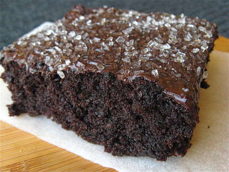 I thought the icing looked kind of boring, so I sprinkled it with coarse white sugar, my best friend when it comes to instant makeover in the world of beautiful baked goods. Not only did the sugar perk up the cake's appearance—it added an interesting and enjoyable crunch, a lovely textural contrast to the soft, moist cake and smooth icing.
