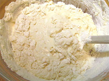 This recipe begins with “fed” or “ripe” sourdough starter, which means you need to plan ahead and feed your refrigerated starter before using it. Combine 1 cup of “fed” starter with milk and flour.