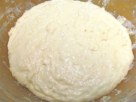 Here it is after 3 hours. It won't get all bubbly like sourdough usually does; it'll just kind of smooth out and expand a bit.