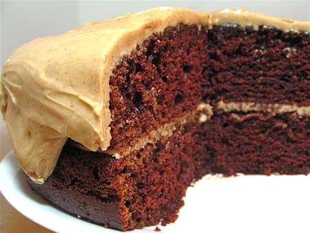 The following cake is yet another way to keep your sourdough starter active and happy. And the thick, fudge-like coffee icing on top is a great counterpoint to the chocolate, both in flavor and appearance. Enjoy!