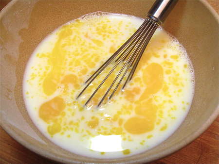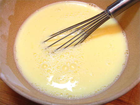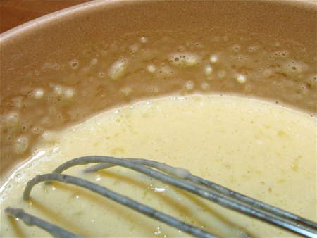 Finally, thinking to simplify my lazy life just a tad, I beat the ingredients in my KitchenAid stand mixer. OK; better than the first two methods. But “OK” is a long way from “WOW!” Whisking by hand was the clear winner.