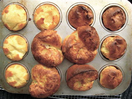 I used to have a “never-fail” popover recipe that made pretty good popovers. These weren't the overblown, softball-sized beauties you get in fancy steakhouses, but they also didn’t require a special popover pan, and they popped reliably.