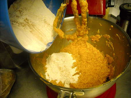 The mixture will break and look icky; that’s OK. If this freaks you out, you can alternate adding some of the dry ingredients between eggs. The mixture will look better as it develops, but it will bake up the same way however you add the flour mixture.