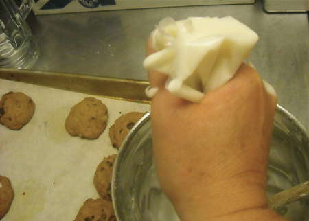 Hint number two: never fill a pastry bag more than 2/3 full, and close up the back. Spring clips or twist ties both work.