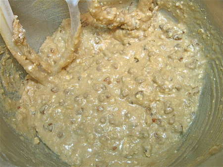 Mix the wet ingredients into the dry ingredients. This doesn't mean turn the mixer on high and beat like wild. It simply means stir till everything that was dry is now wet. Period. Stop. End of story.