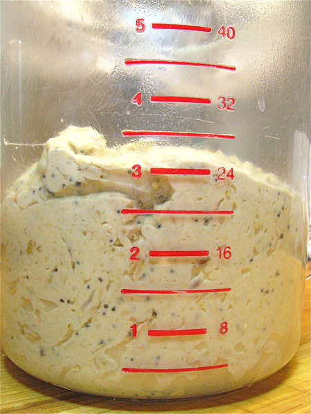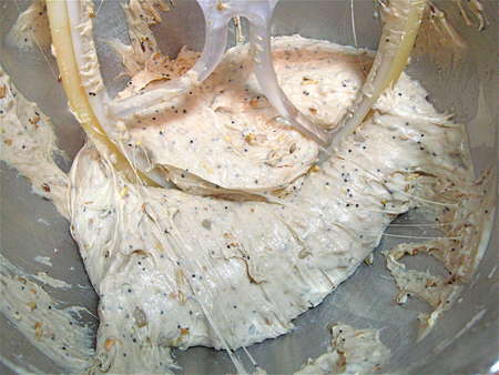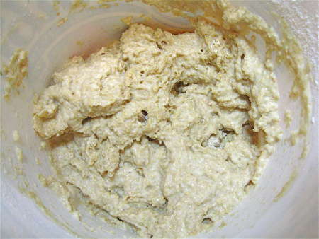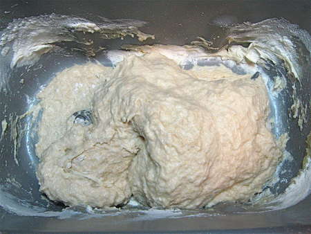 This is a sticky dough, so you want to make it in a stand mixer or bread machine, as I'm doing here. Let me show you why I nearly always make dough in the bread machine (when I'm not making it in the stand mixer for blog photos). If you don't have a bread machine, at least take a quick look as you scroll down to the mixer pictures; hey, maybe I can sell you on a bread machine!