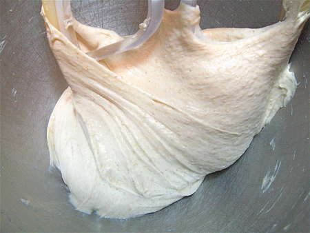Here's the dough, mixed and kneaded in a stand mixer.