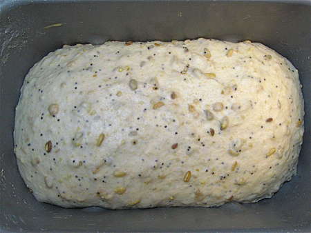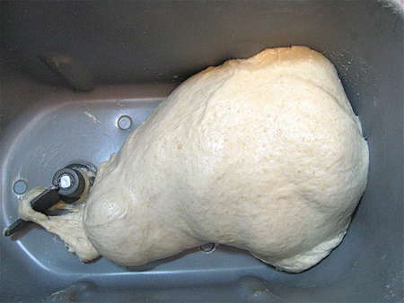 If you like, program the machine for its regular cycle (rather than the dough cycle), and let the bread bake right in the machine. Not bad, huh?