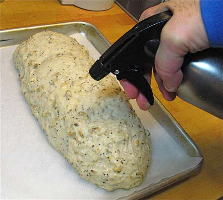 Spritz with water just before baking. This helps give the ciabatta a crisp crust.