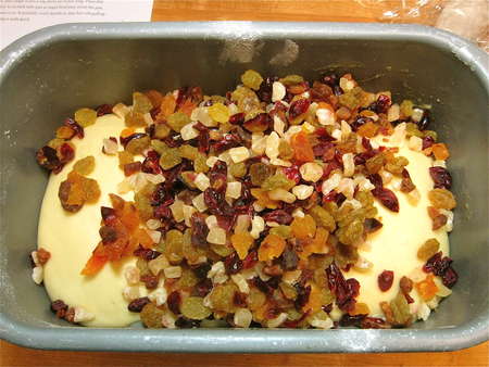 Mix the starter with the remaining dough ingredients, except for the fruit.
