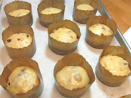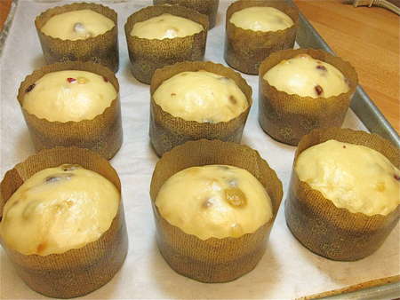 Place the balls in lightly greased mini-panettone paper bakers.