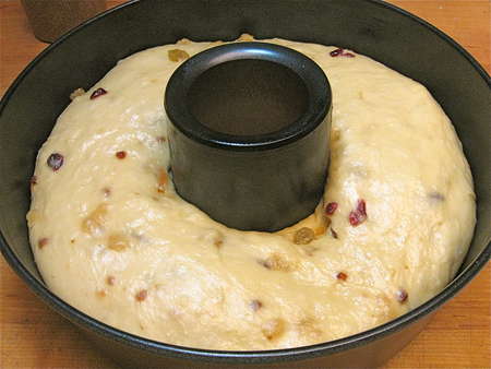 Now, I know everyone will ask—can I bake it in a bundt-style pan? Yes, so long as it's large enough. A 9” to 10” pan should do the trick. How about baking it in a free-form wreath shape? I believe this dough is stiff enough, with the fruit, to handle that. It'll spread and flatten a bit rather than rise quite so high. And finally, if you insist on baking it in the traditional round, tall pan, go for it; you'll need to bake the panettone longer, and tent with foil if it appears to be browning too quickly. Check out our Ginger-Apricot Panettone recipe for baking instructions using a traditional pan.