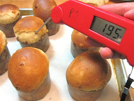 ...and bake till golden. The instant-read thermometer will read 190°F (at least; it's OK if it goes a bit over). By the way, I like my Thermapen, because it really is INSTANT; no waiting around for the temperature to gradually stabilize.