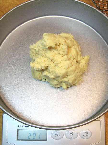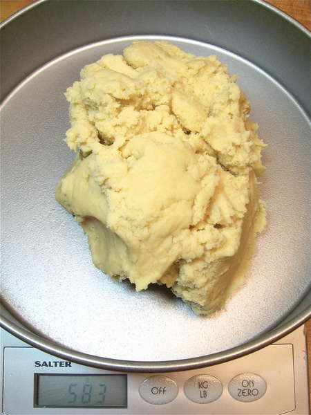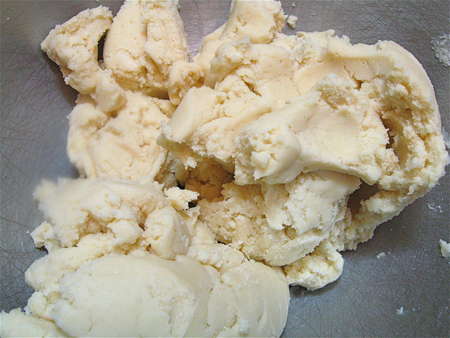 Add the flour, mixing to make a cohesive dough. The mixture is quite dry; it'll take awhile to come together. If it remains crumbly, dribble in up to a tablespoon of water to make it cohesive.