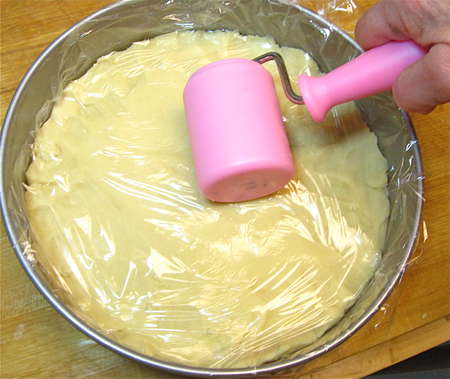 To flatten and smooth, cover with plastic wrap and roll with a pastry roller. Or press with the bottom of a measuring cup.