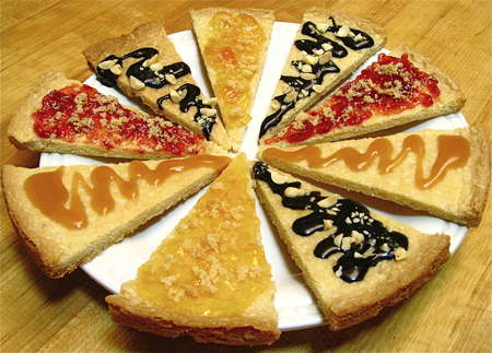 ...decorate and enjoy. We've drizzled these with caramel sauce; fudge sauce topped with diced nuts; and jam topped with shortbread crumbs.