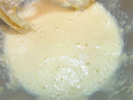 Bake the dough in a preheated 350°F oven for about 25 minutes, till it's set and just beginning to brown around the edges.