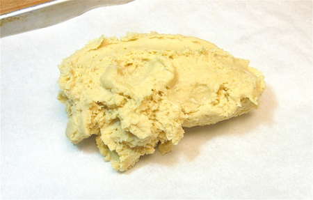 Wet your fingers (to cut down on the stickiness), and smooth the biscotti into a 14” x 2 1/2” x 3/4”-tall rectangle.