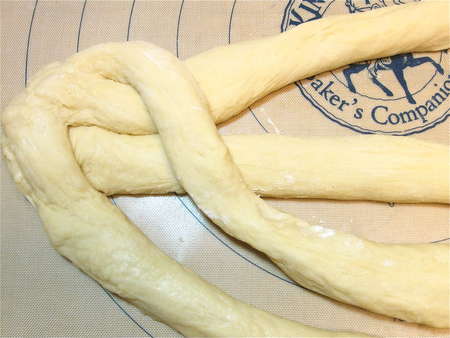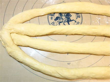 Here's a copy of some handy 4-strand braid directions from The King Arthur 200th Anniversary Cookbook. Refer to these as you work if (like me) you're easily confused by the braiding process.