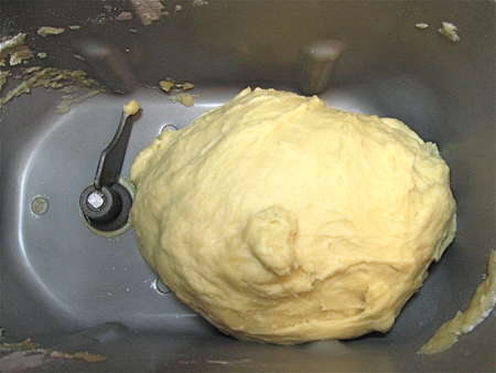 An hour later, it's risen nicely. Because of the eggs and honey this dough doesn't rise vigorously; but it should definitely look puffy by the end of the cycle.