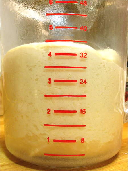 Put the dough in a lightly greased bowl (or large measuring cup, which allows you to track its rise); cover the bowl or cup.