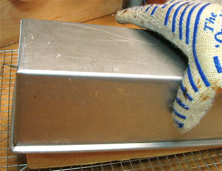 Turn the pan on its side, shaking slightly to loosen the bread.