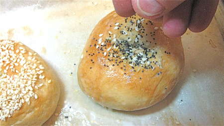 Spray with water or brush with beaten egg white), and add seeds. Or not.