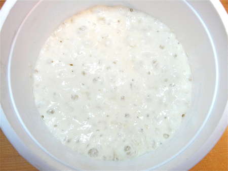 Next morning, the starter should be nice and bubbly, and should have expanded.