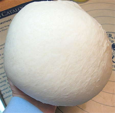 You can actually see the gluten strands, if you look towards the right side and bottom of the ball of dough.