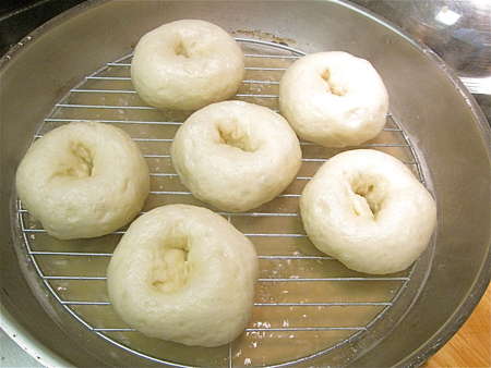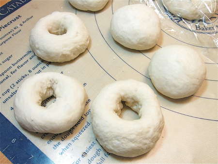 the holes will shrink a bit as the bagels sit, but they're not going to be sitting too long. For best results, the process needs to go quickly from here on in, so be prepared.