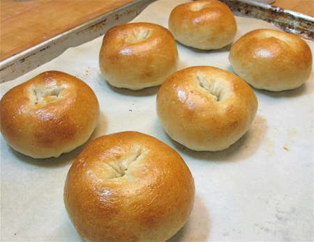 Here are your beautifully shiny bagels after their 20-minute bake.