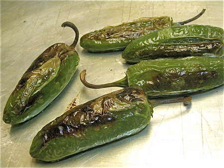 After several turnings, your peppers will be nicely charred all over, and people will be wandering into the kitchen wondering what smells so good.